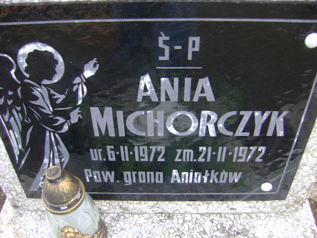 Grób: I.2.4 Michorczyk Ania ur.:06.02.1972 zm.:21.02.1972 |