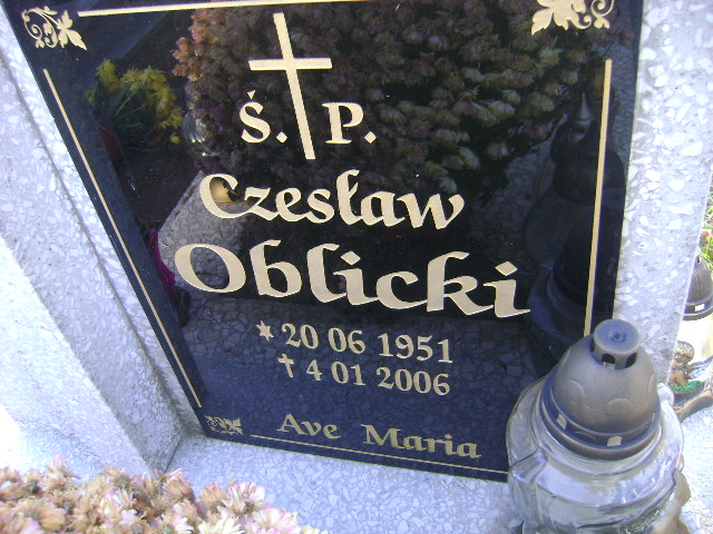 Grób: I.2.44 Oblicki Czesław ur.:20.06.1951 zm.:04.01.2006 |