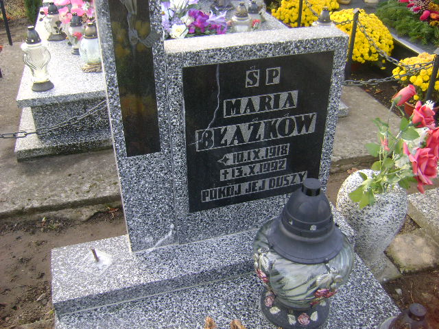 Grób: I.3.10 Błaźków Maria ur.:10.09.1918 zm.:13.10.1992 Błażków Michał ur.:05-09-1919 zm.:11-06-1992 |