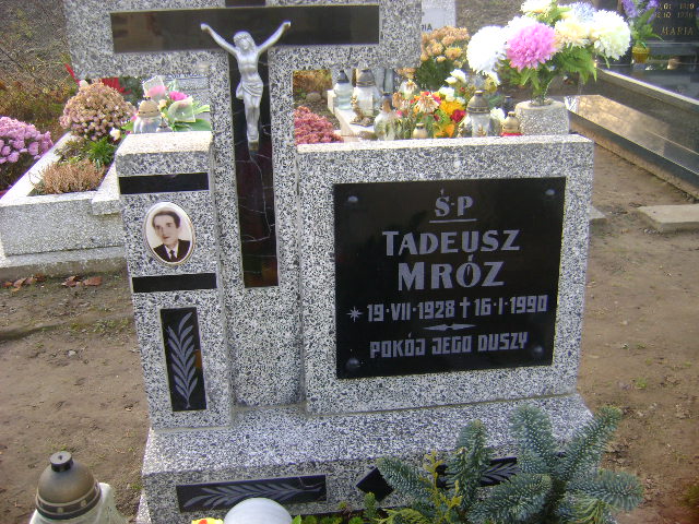 Grób: I.3.5 Mróz Tadeusz ur.:19.07.1928 zm.:16.01.1990 Mróz Anna ur.:10-05-1932 zm.:20-07-2023 |