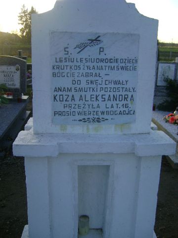 Grób: I.7.27 Koza Aleksandra ur.: zm.:18.3.1954 żyła lat 16 |