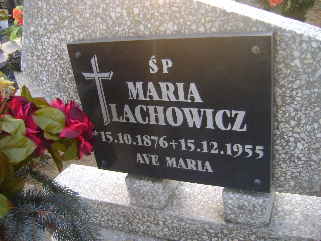 Grób: I.7.28 Lachowicz Maria ur.:15.10.1876 zm.:10.12.1955 |