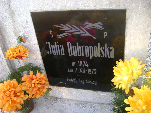 Grób: I.7.53 Dobropolska Julia ur.:1874 zm.:07.12.1972 |