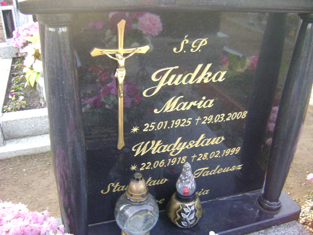 Grób: I.8.12 Judka Maria ur.:25.01.1925 zm.:29.03.2008 Plac wykupiony w 1999 Judka Stanisław ur.: zm.: Judka Tadeusz ur.:18.12.1950 zm.:13.02.1951 |