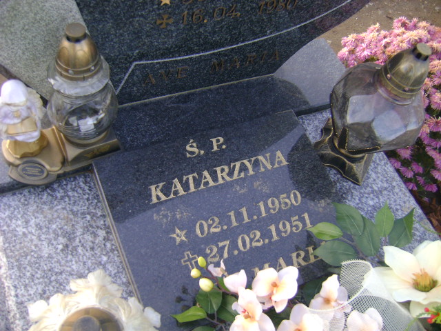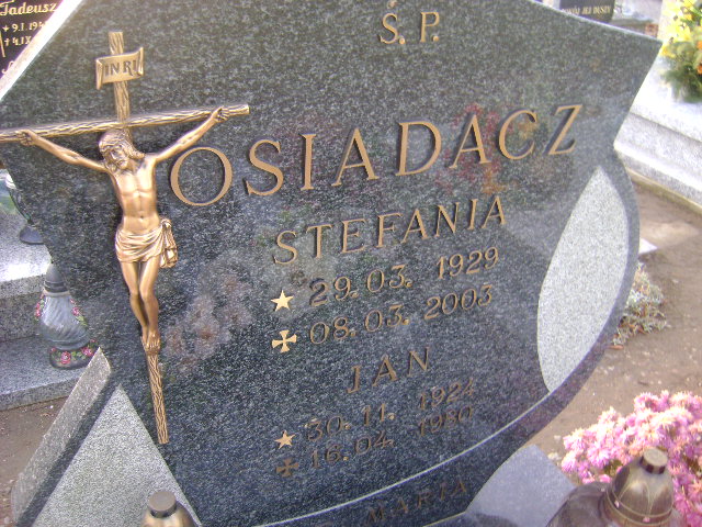 Grób: I.9.21 Osiadacz Katarzyna ur.:02.11.1950 zm.:27.02.1951 Osiadacz Stefania ur.:29.03.1929 zm.:08.03.2003 Osiadacz Jan ur.:30.11.1924 zm.:16.04.1930 |