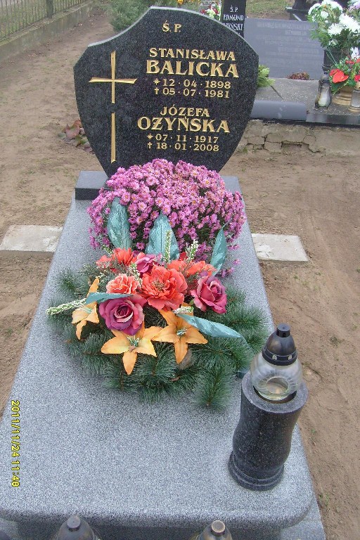 Grób: II,III,1i2 Balicka Stanisława ur.:1898-04-12 zm.:1981-07-05 Ożyńska Józefa ur.:1917-11-07 zm.:2008-01-18 |