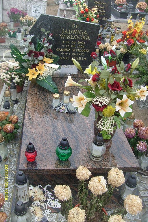 Grób: III,I,11i12 Wisłocka Jadwiga ur.:1942-06-19 zm.:1996-05-23 Wisłocki Janusz ur.:1972-06-01 zm.:1972-06-01 |
