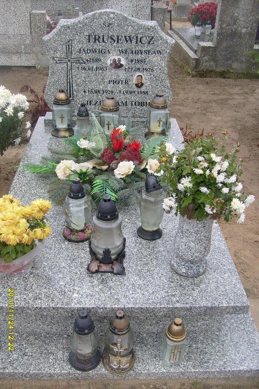 Grób: III,III,5i6i7 Trusewicz Jadwiga ur.:1889-01-01 zm.:1963-01-16 Trusewicz Władysław ur.:1885-01-01 zm.:1976-09-26 Trusewicz Piotr ur.:1920-08-15 zm.:1988-09-19 |