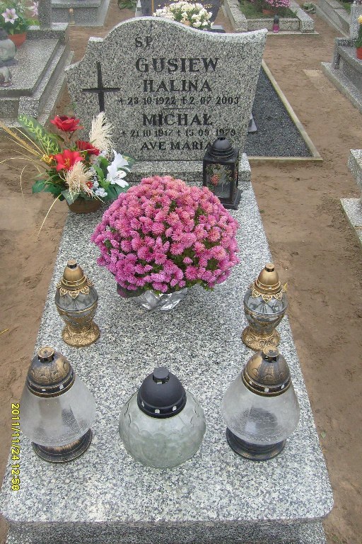 Grób: IV,II,17 Gusiew Michał ur.:1917-10-21 zm.:1979-09-15 Gusiew Halina ur.:1922-10-23 zm.:2003-07-02 |