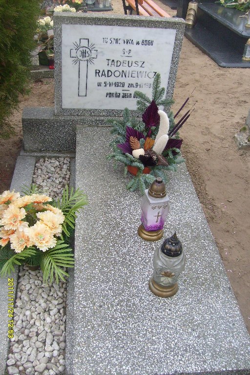 Grób: IV,II,2 Radoniewicz Tadeusz ur.:1920-06-05 zm.:1984-03-09 Radoniewicz Eugenia ur.:1925-10-10 zm.:2020-04-15 |