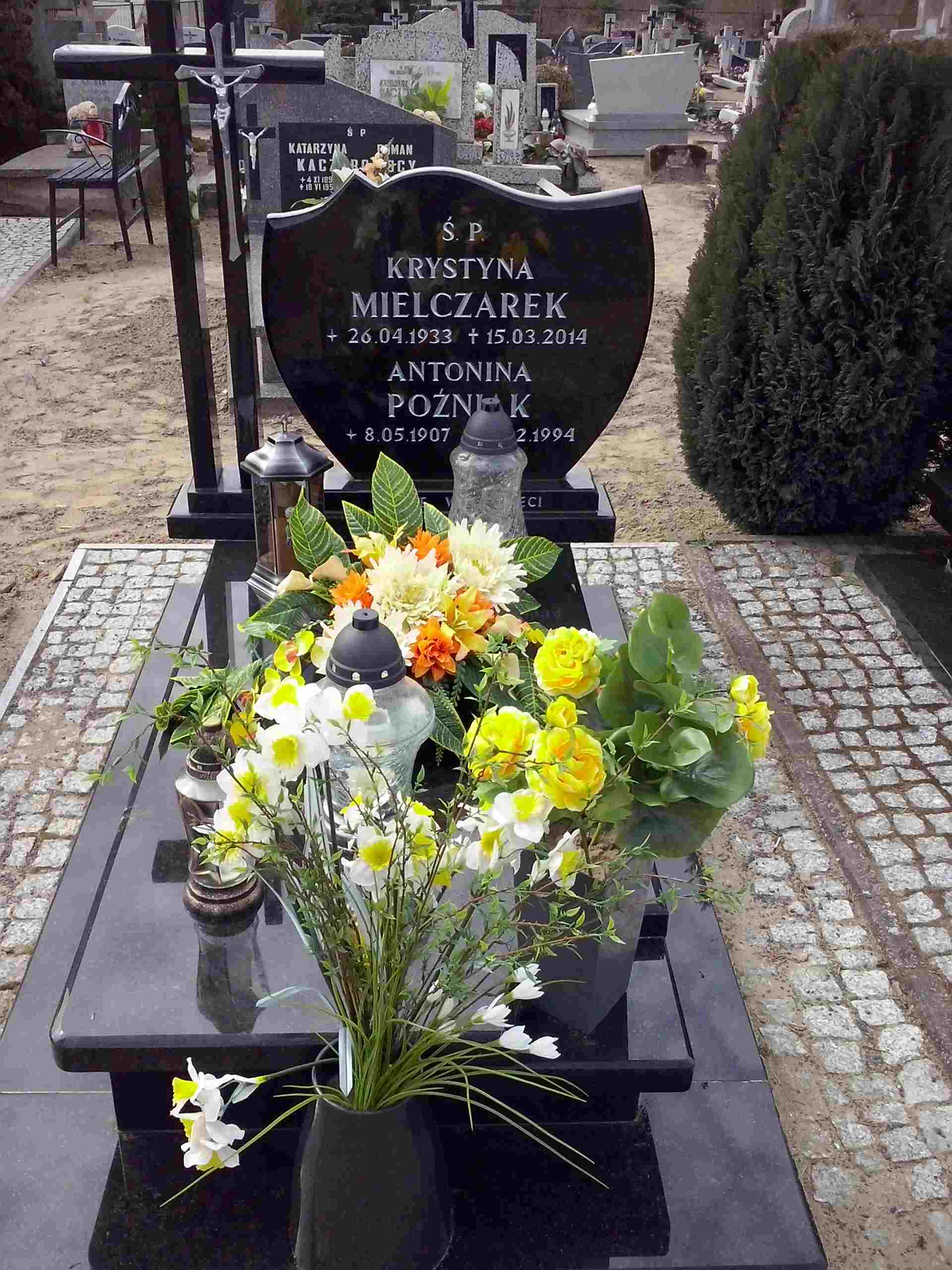 Grób: IV,II,7 Mielczarek Krystyna ur.:1933-04-26 zm.:2014-03-15 Poźniak Antonina ur.:1907-05-08 zm.:1994-02-15 |