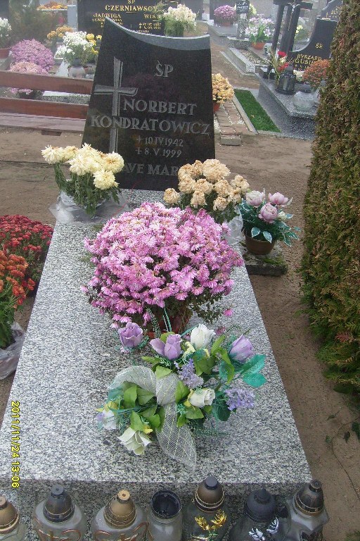 Grób: IV,III,12 Kondratowicz Norbert ur.:1942-04-10 zm.:1999-05-08 Kondratowicz Jadwiga ur.:1937-10-07 zm.:2019-07-06 |