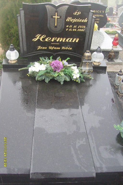 Grób: IV,III,26i27 Herman Wojciech ur.:1930-11-11 zm.:2001-06-14 Herman Grzegorz ur.:1933-10-17 zm.:1981-12-22 miejsce dla 2 osoby ur.: zm.: Herman Helena ur.:1931-06-22 zm.:2020-02-19 |