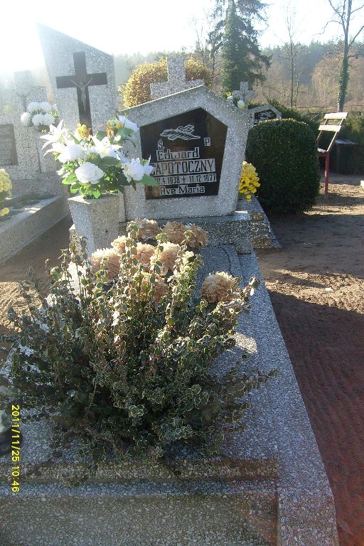 Grób: IV,V,35 Zapotoczny Edward ur.:1938-04-20 zm.:1977-12-11 Zapotoczna Maria ur.:1950-02-01 zm.:2022-05-20 |