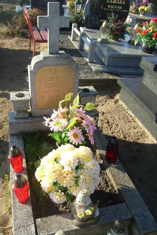 Grób: IV,VI,10 Szkuta Zofia ur.: 1959-09-06 zm.:1962-06-07 Szkuta Czesław Feliks ur.:1951-05-18 zm.:2017-07-02 Szkuta Zofia ur.:1947-08-17 zm.:2017-11-06 |