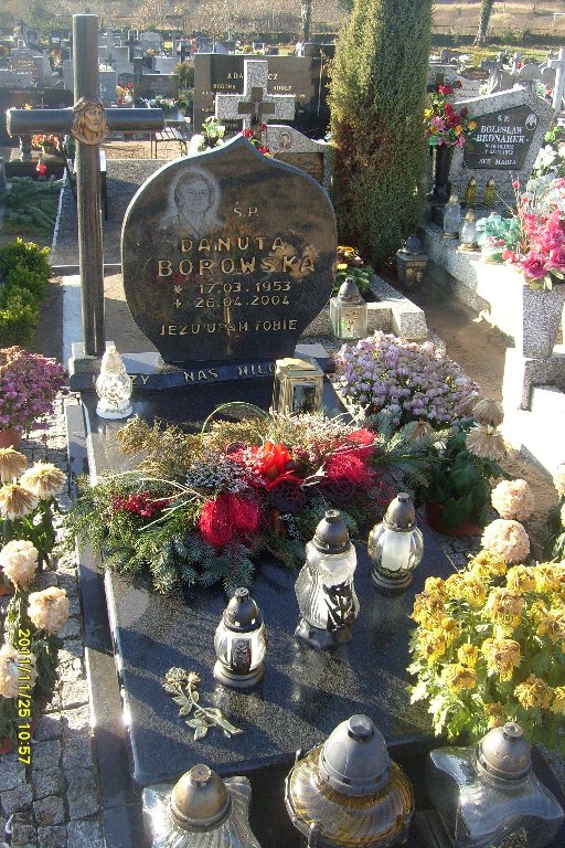 Grób: IV,VI,20 Borowska Danuta ur.:1953-03-17 zm.:2004-04-26 Borowski Jan ur.:1948-01-24 zm.:2025-01-12 |