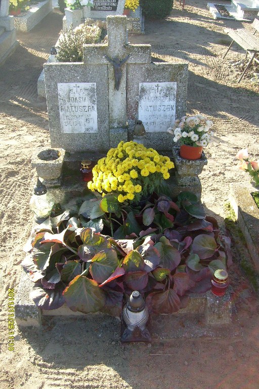 Grób: IV,VI,37i38 Matuszak Janusz ur.:1956-04-26 zm.:1957-02-10 Matuszak Joanna ur.:1971-04-30 zm.:1971-09-16 |