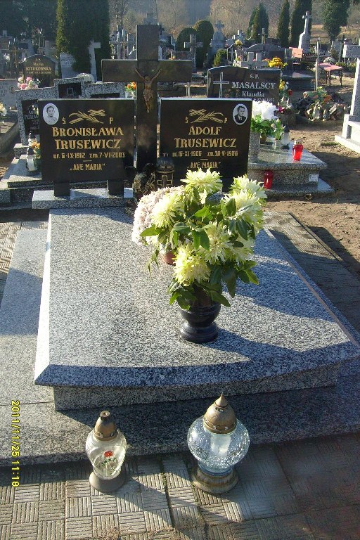 Grób: IV,VII,4i5 Trusewicz Bronisława ur.:1912-09-06 zm.:2003-06-07 Trusewicz Adolf ur.:1906-11-16 zm.:1986-05-30 |