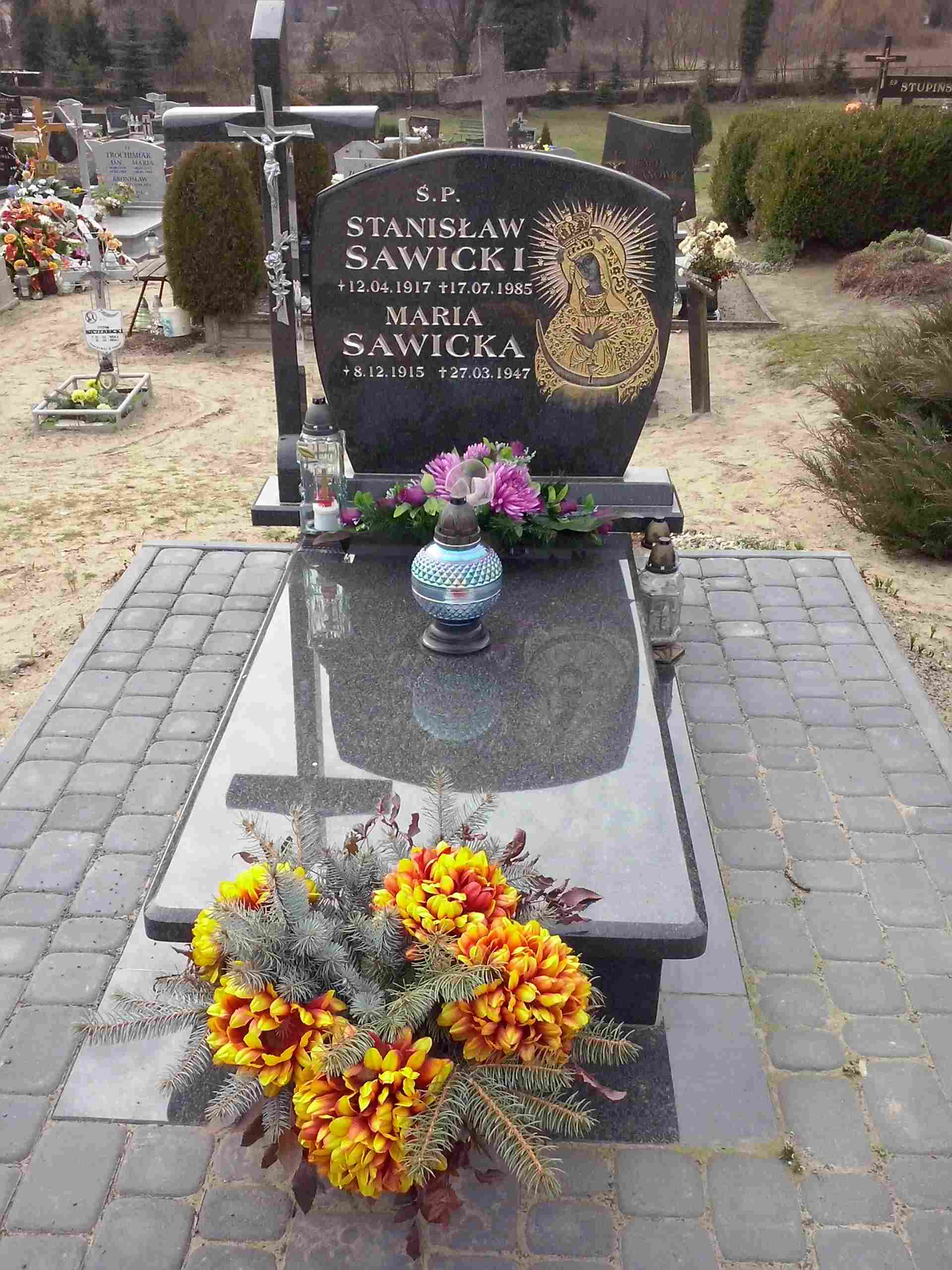 Grób: IV,VIII,3i4 Sawicka Maria ur.:1915-12-08 zm.:1947-03-27 Sawicki Stanisław ur.:1907-04-12 zm.:1985-07-17 Sawicki Marian ur.:1945-01-01 zm.:1945-01-01 Sawicka Ewa ur.:1943-09-05 zm.:2019-05-02 Sawicka Józefa ur.:1924-03-19 zm.:2022-06-10 |