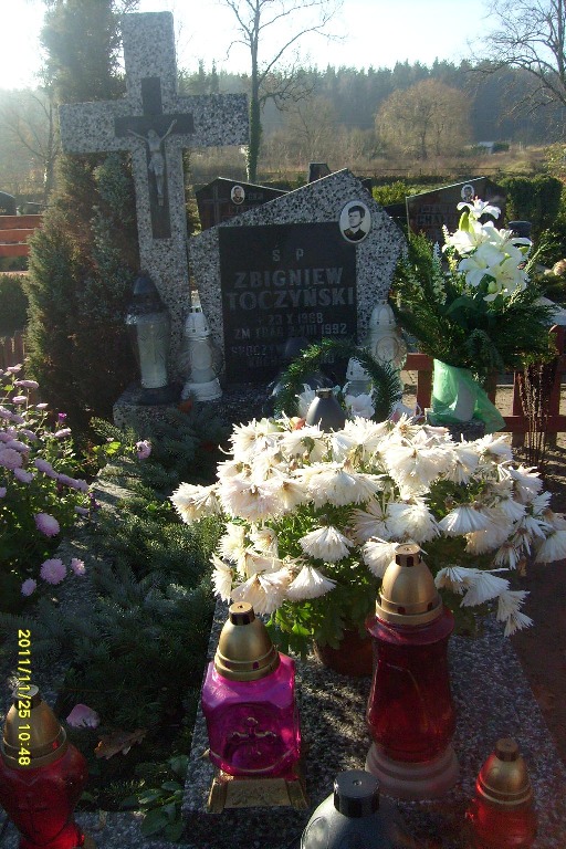 Grób: IX,III,8 Toczyński Zbigniew ur.:1968-10-23 zm.:1992-08-03 Toczyński Tadeusz ur.:1939-10-13 zm.:2014-08-21 |