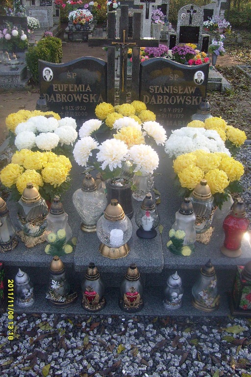Grób: I,IV,16i17 Dąbrowski Stanisław ur.:1927-05-08 zm.:1979-04-21 Dąbrowska Eufemia ur.:1930-09-08 zm.:2000-02-17 |
