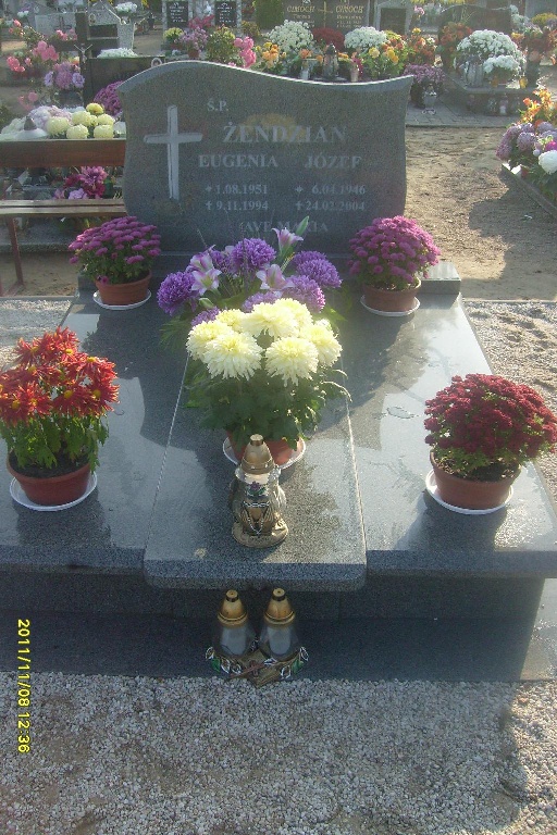 Grób: I,IX,19i20 Żendzian Antoni ur.:1884-05-06 zm.:1966-05-12 Żendzian Stanisława ur.:1903-06-09 zm.:1982-02-27 Żendzian Stanisław ur.:1913-09-01 zm.:1993-11-30 Żendzian Eugenia ur.:1951-08-01 zm.:1994-11-09 Żendzian Józef ur.:1946-04-16 zm.:2004-02-24 |