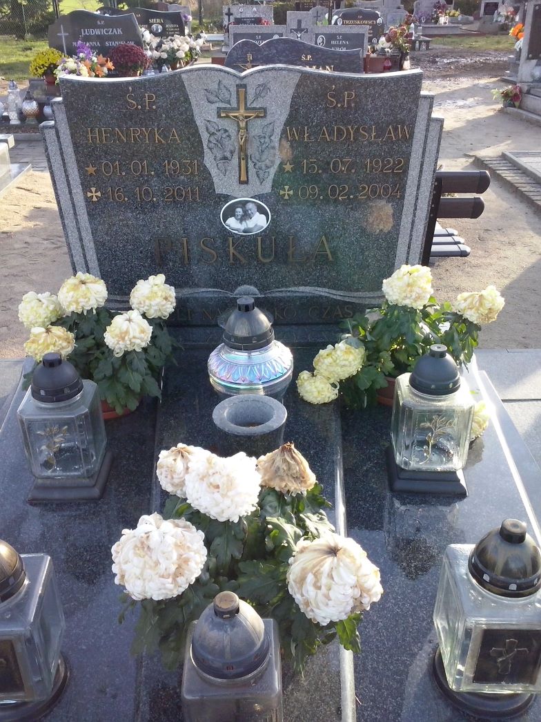 Grób: I,IX,6i7 Piskuła Henryka ur.:1931-01-01 zm.:2011-10-16 Piskuła Władysław ur.:1922-07-15 zm.:2004-02-09 |
