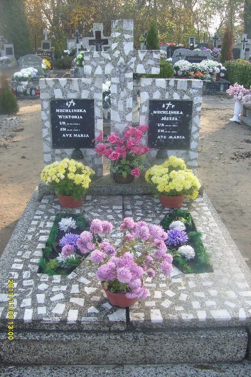 Grób: I,VI,17i18 Mechlińska Wiktoria ur.:1913-10-26 zm.:1983-02-27 Mechlińska Józefa ur.:1917-02-20 zm.:1993-03-13 Mechlińska Marianna ur.:1941-01-07 zm.:2012-04-20 |