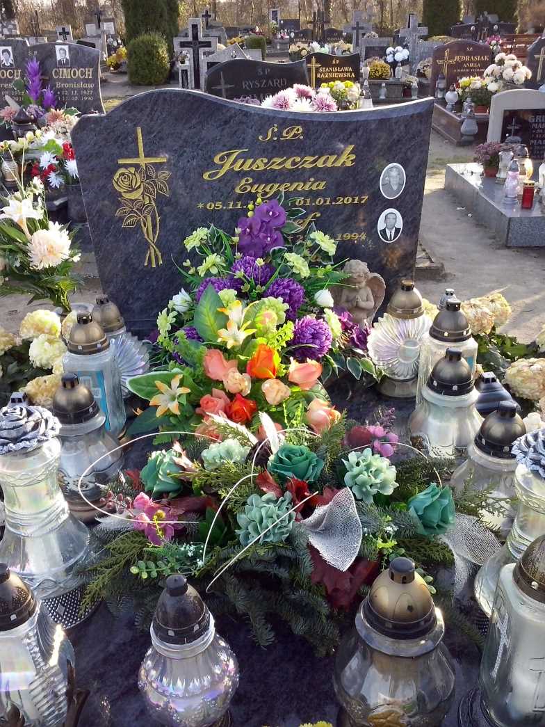 Grób: I,VIII,19i20 Juszczak Eugenia ur.:1926-11-05 zm.:2017-01-01 Juszczak Józef ur.:1924-03-21 zm.:1994-04-27 Juszczak Teresa ur.:1953-08-14 zm.: |