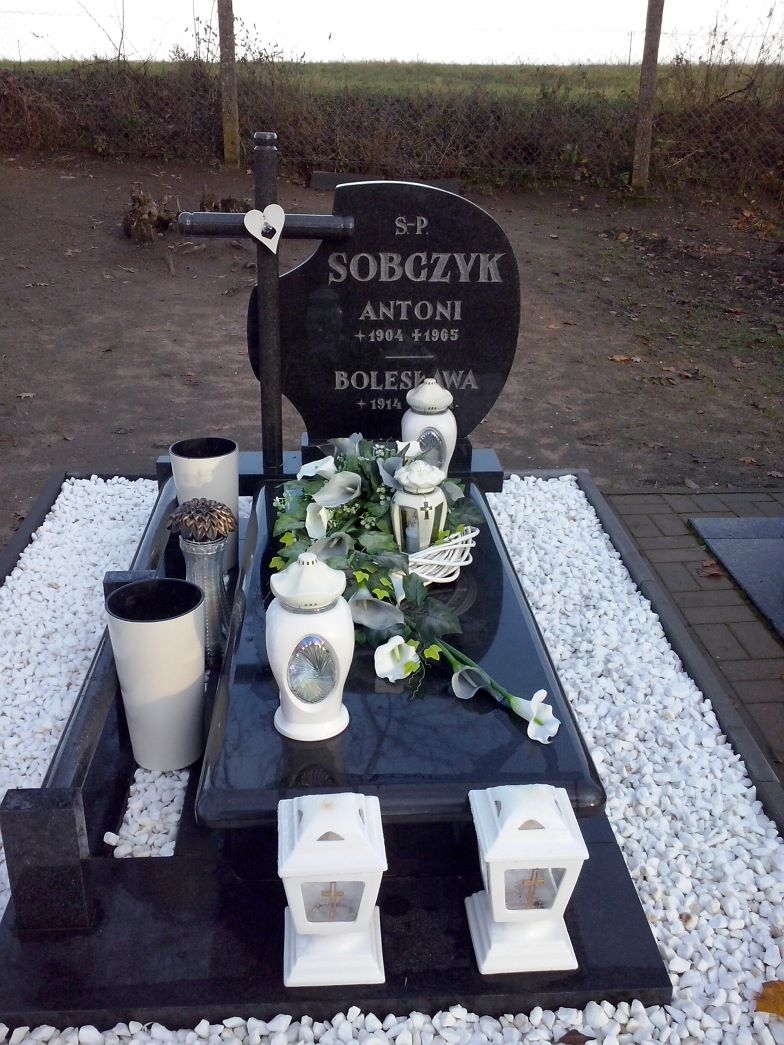 Grób: I,I,14 Sobczyk Bolesława ur.:1914-01-01 zm.:2001-01-01 Sobczyk Antoni ur.:1904-01-01 zm.:1965-01-01 |