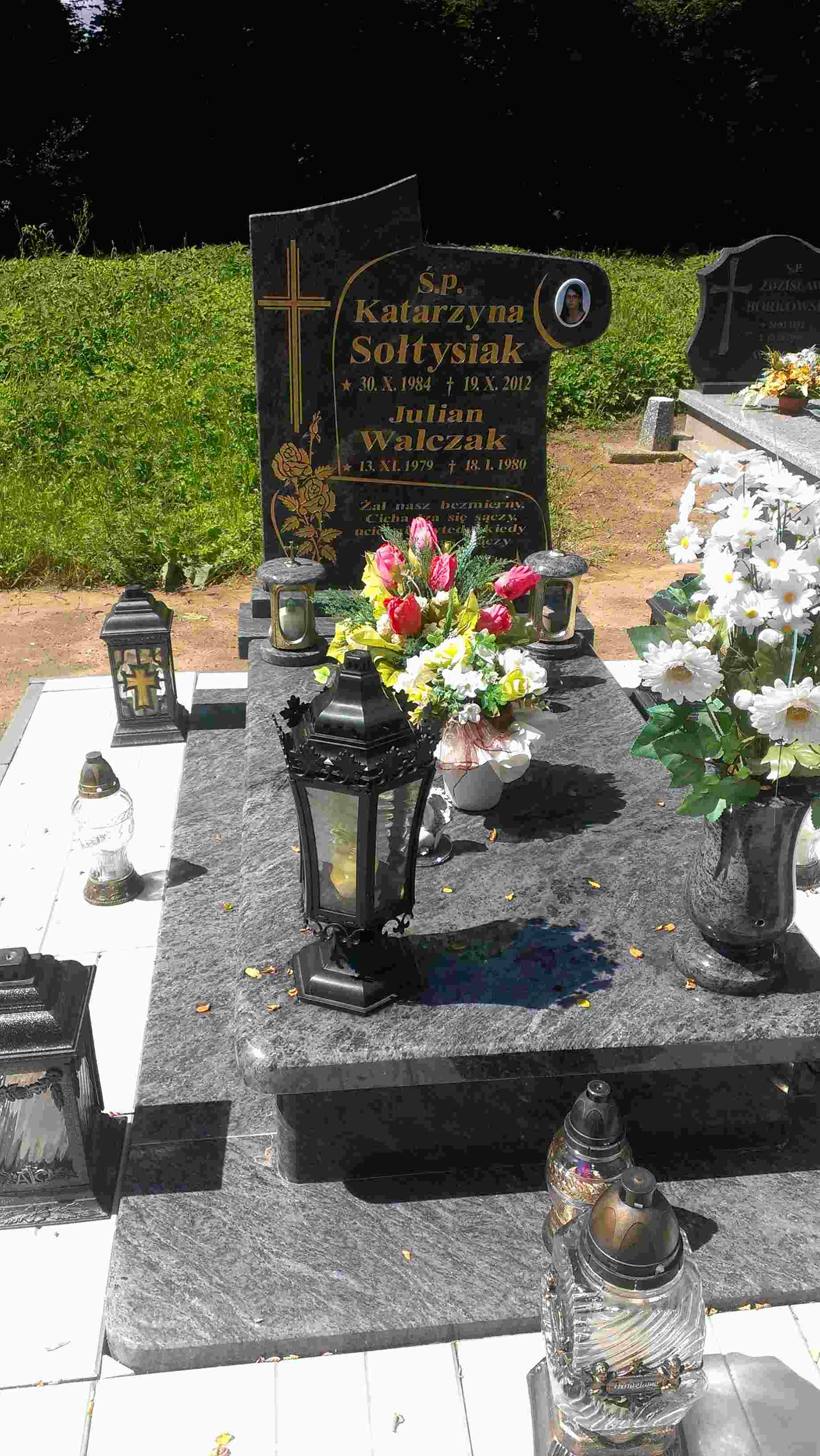 Grób: II,II,7 Walczak Julian Krzysztof ur.:1979-02-13 zm.:1980-01-18 Sołtysiak Katarzyna ur.:1984-10-30 zm.:2012-10-19 |