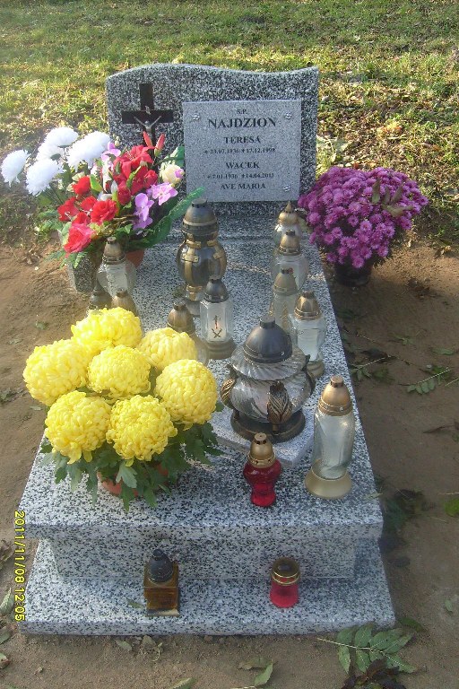 Grób: II,III,3 Najdzian Teresa ur.:1936-07-23 zm.:1998-12-17 Najdzian Wacław ur.:1936-01-07 zm.:2011-04-14 |