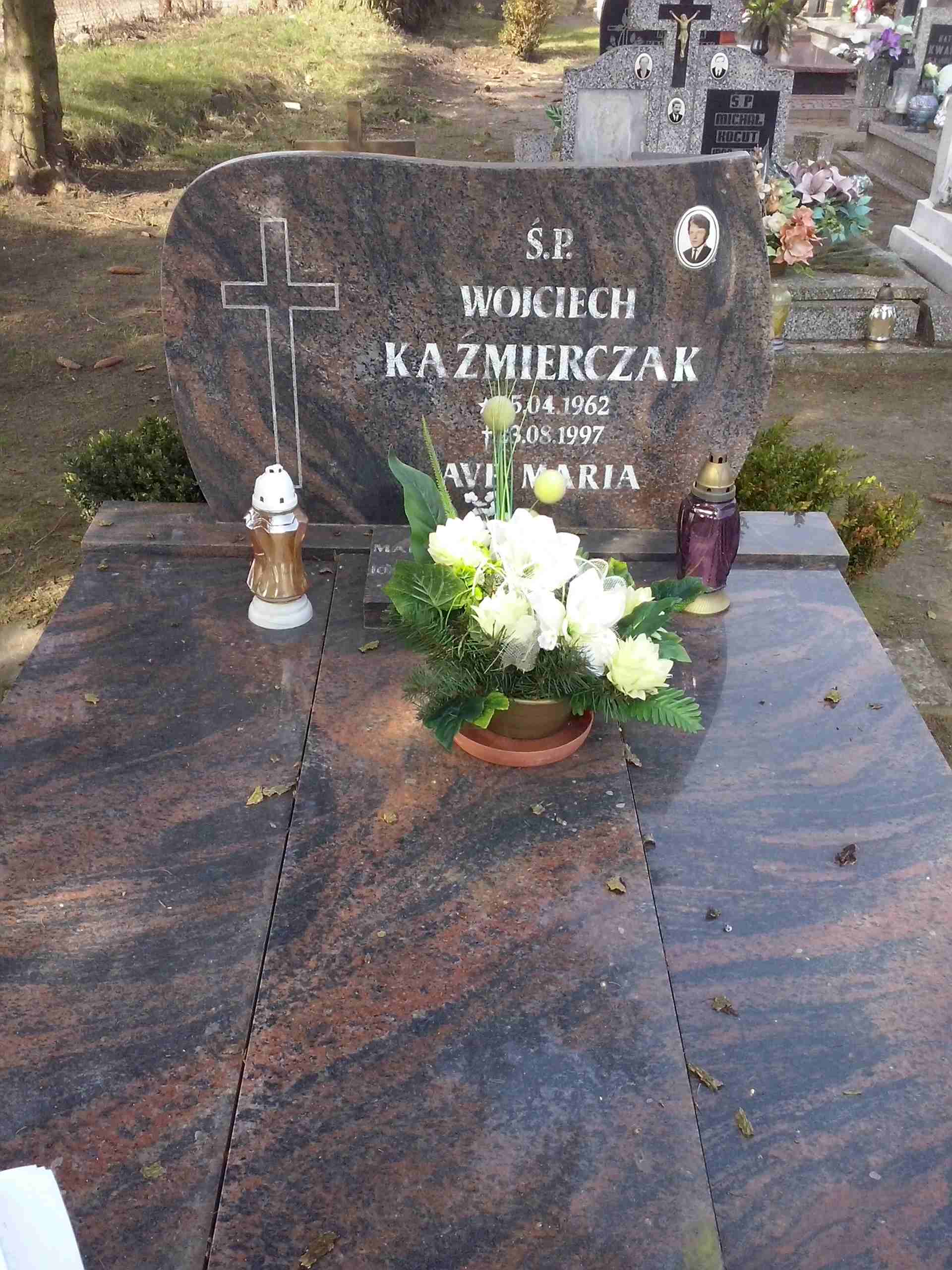 Grób: I,II,17i18 Kaźmierczak Wojciech ur.:1962-04-15 zm.:1997-08-23 Lewandowska Józefa ur.: zm.: Czyżo Marianna ur.: zm.: Kaźmierczak Marek ur.:1959-09-18 zm.:2026-03-15 |