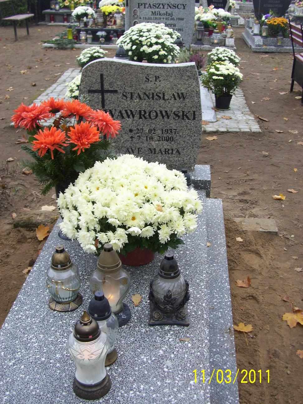 Grób: I,II,21 Wawrowski Stanisław ur.:1937-02-22 zm.:2000-10-07 Wawrowski Sławomir ur.:1964-02-19 zm.:2022-07-15 |