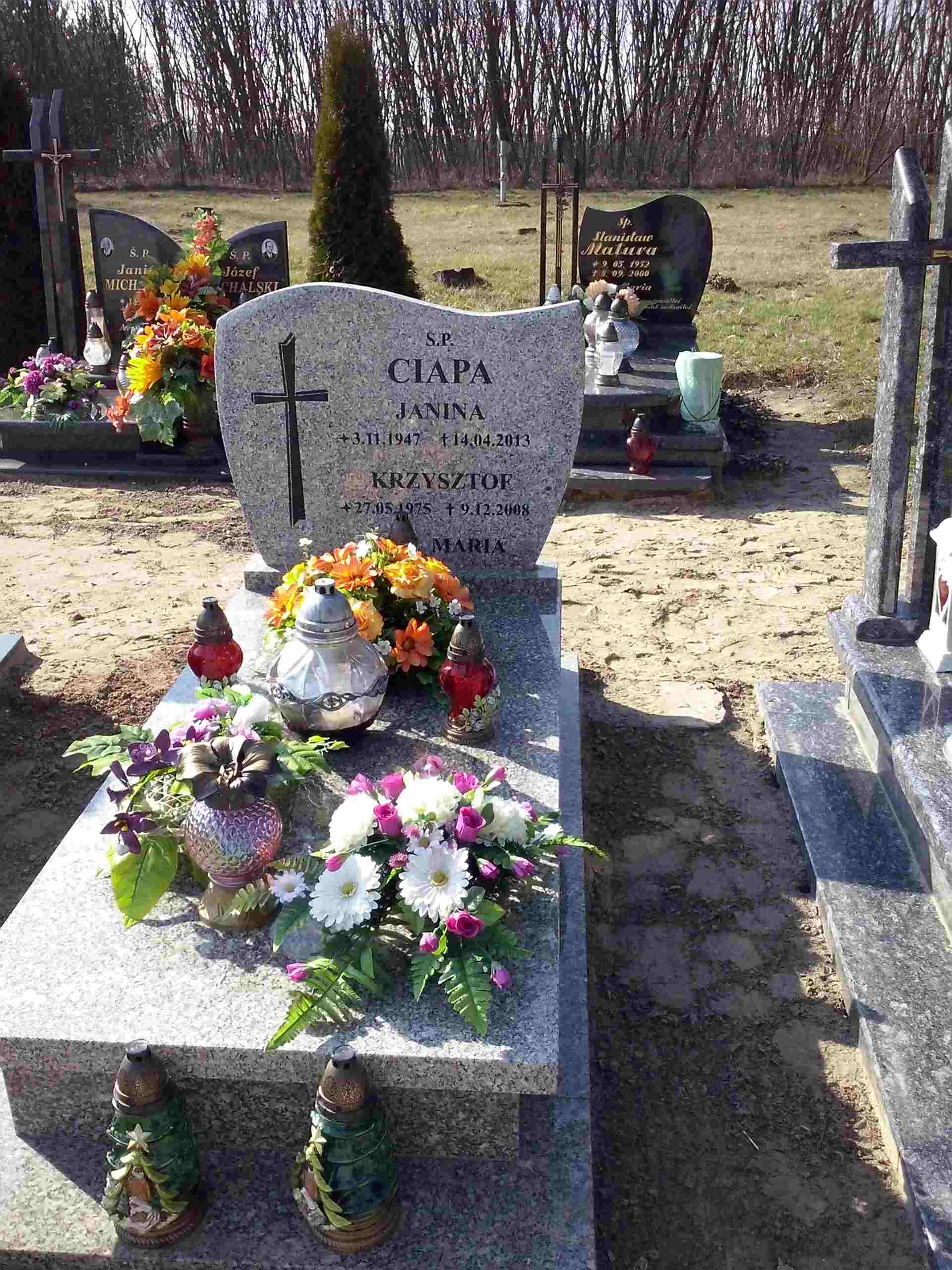 Grób: I,XV,12 Ciapa Krzysztof ur.:1975-05-27 zm.:2008-12-09 Ciapa Janian ur.:1947-11-03 zm.:2013-04-14 |