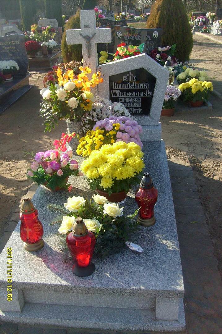 Grób: II,XI,2 Wieczorek Bronisława ur.:1886-12-09 zm.:1979-09-23 Wieczorek Jan ur.:1892-01-01 zm.:1962-07-29 Wieczorek Maria ur.:1920-02-06 zm.:1954-03-11 Wieczorek Józef ur.:1924-10-28 zm.:2012-11-01 Wieczorek Janina ur.:1930-03-19 zm.:2021-09-12 |