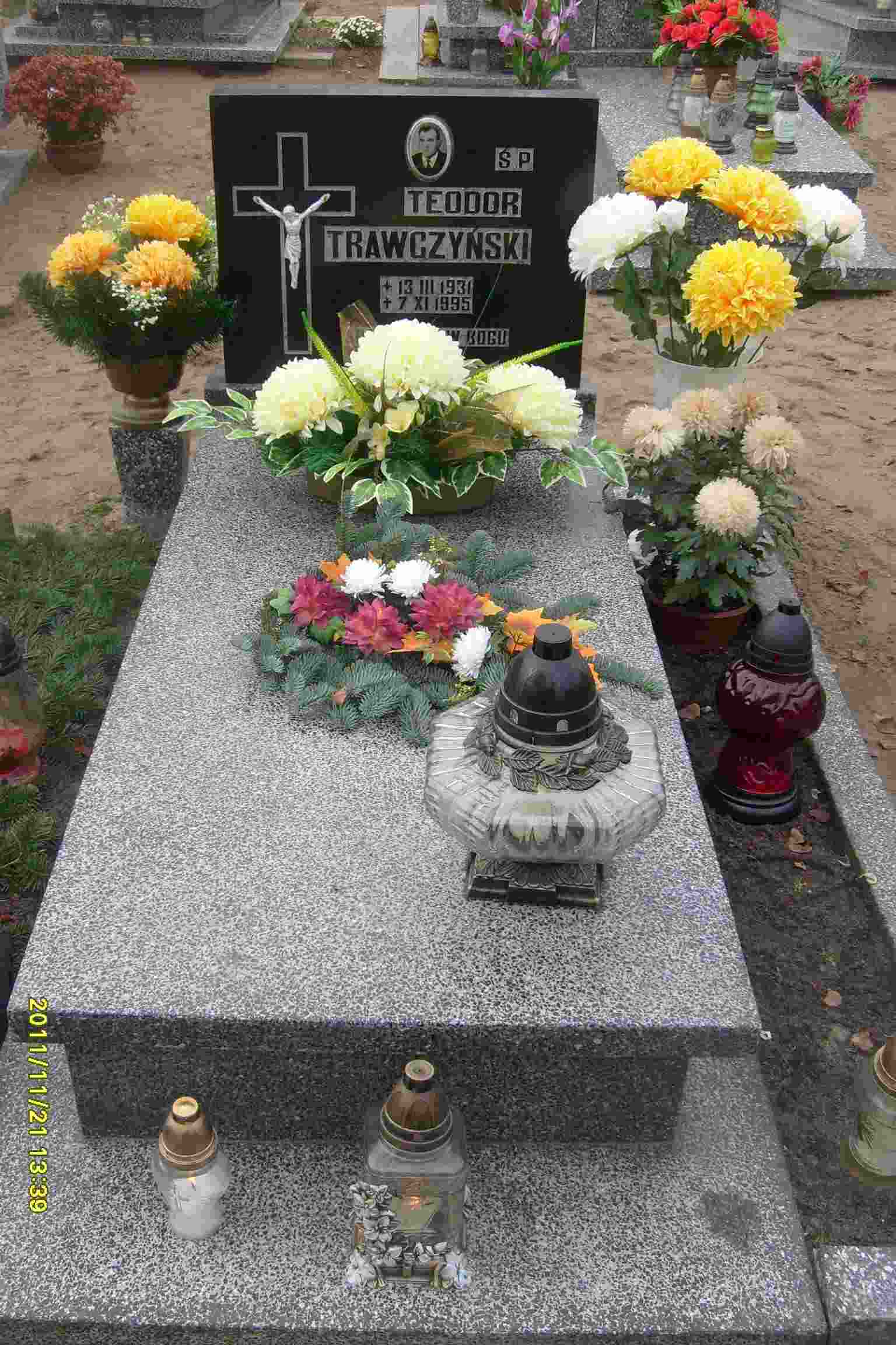Grób: I,III,6 Trawczyński Teodor ur.:1931-03-13 zm.:1995-11-07 Trawczyńska Kazimiera ur.:1935-05-08 zm.:2023-10-30 |