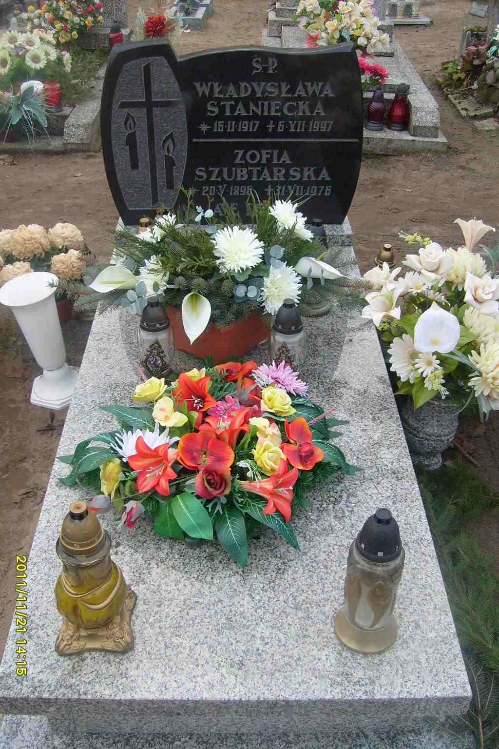 Grób: I,X,6 Staniecka Władysława ur.:1917-02-16 zm.:1997-08-06 Sztubtarska Zofia ur.:1896-05-20 zm.:1976-08-31 |