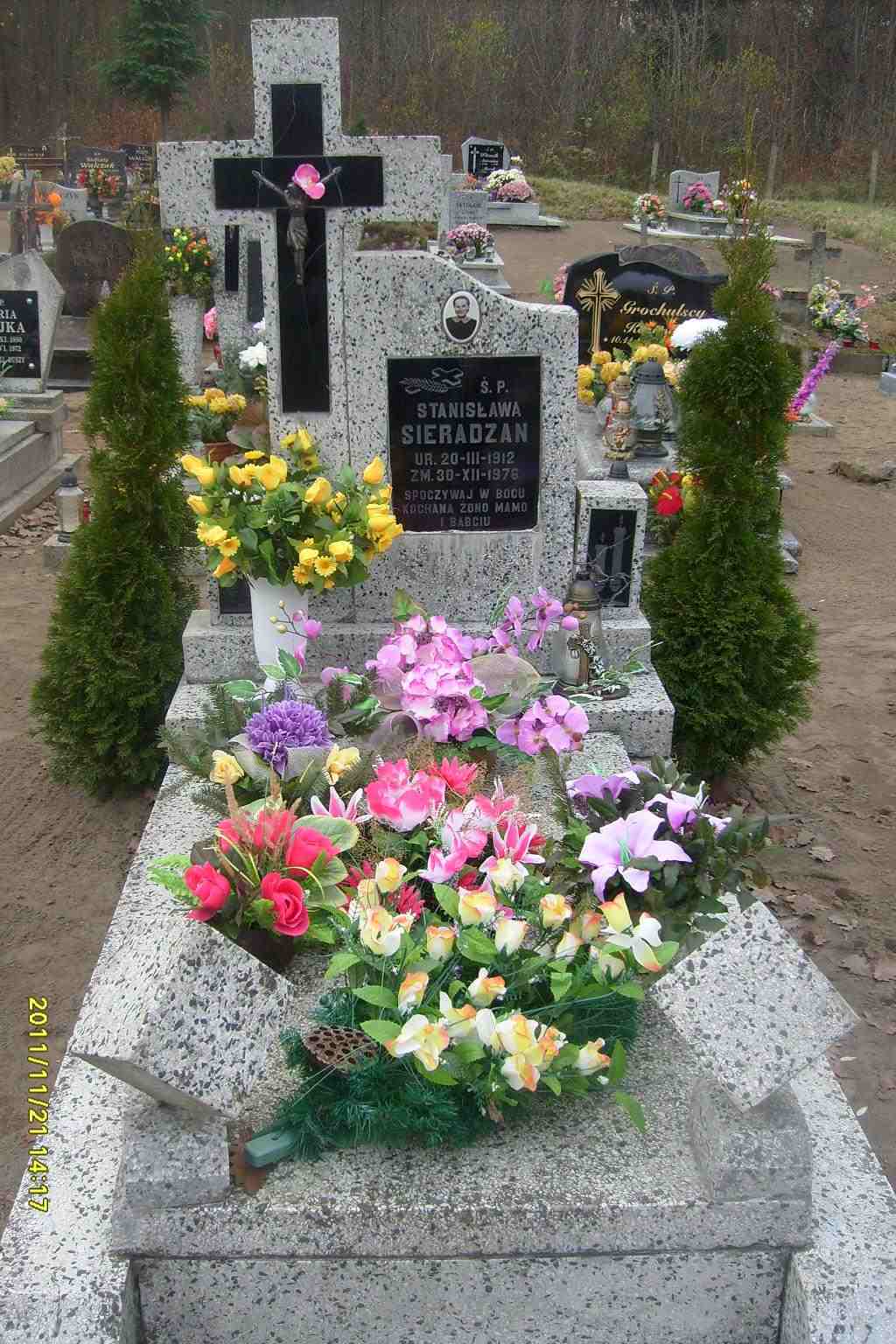 Grób: I,X,9 Sieradza Józef ur.:1915-01-15 zm.:1998-07-24 Sieradzan Stanisława ur.:1912-03-20 zm.:1976-12-30 Sieradzan Józef ur.: zm.:1988-07-24 |