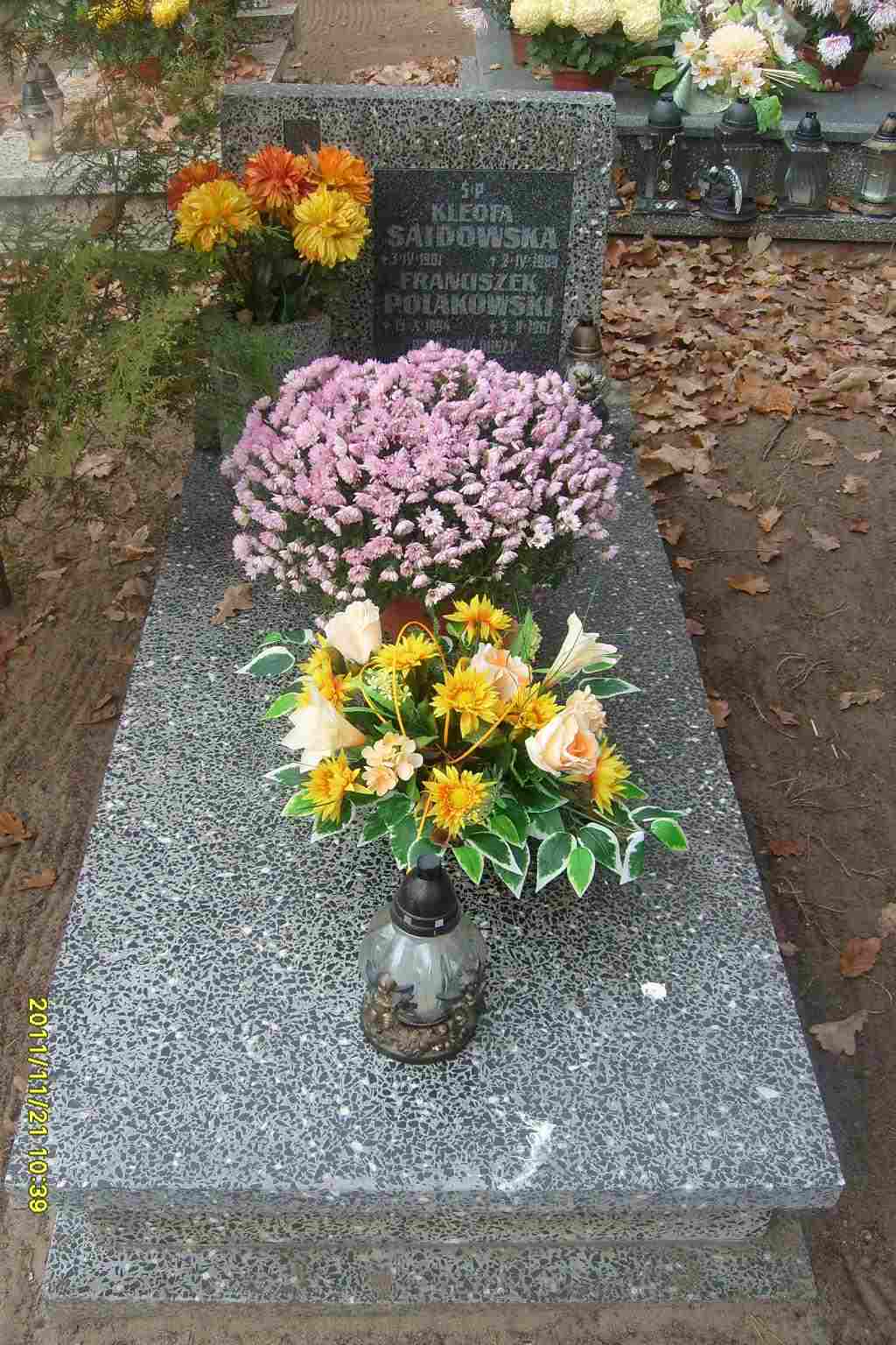 Grób: I,XX,12 Zielińska Elżbieta ur.:1937-11-19 zm.:1998-05-08 Zieliński Alfons ur.:1933-02-25 zm.:1997-06-13 Saidowska Kleofa ur.:1901-04-03 zm.:1989-04-02 Polakowski Franciszek ur.:1894-10-15 zm.:1961-02-05 Zieliński Jan ur.:1958-06-12 zm.:1994-06-14 |