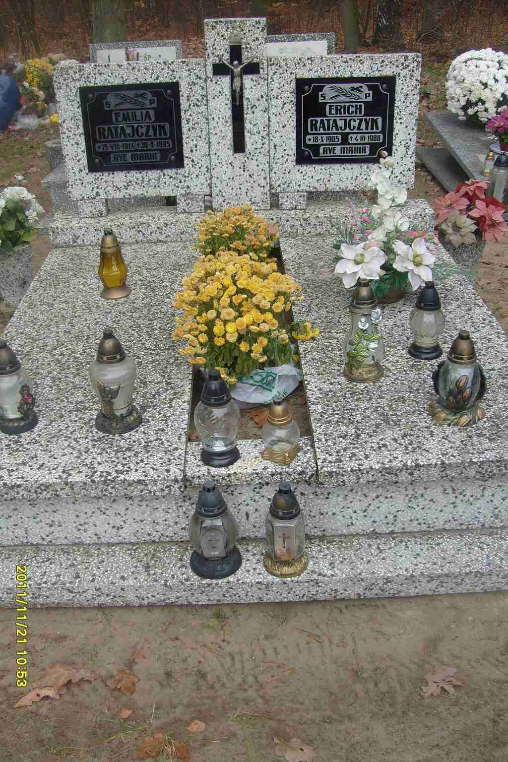 Grób: I,XXIII,1i2 Ratajczyk Emilia ur.:1914-08-15 zm.:1995-10-30 Ratajczyk Erich ur.:1905-10-18 zm.:1988-03-04 |