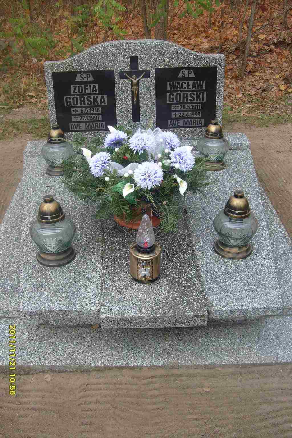 Grób: I,XXIII,8i9 Górska Zofia ur.:1916-05-06 zm.:1997-01-27 Górski Wacław ur.:1911-05-29 zm.:1999-04-22 Chaimski Wiesław ur.:1949-04-26 zm.:2019-10-21 |
