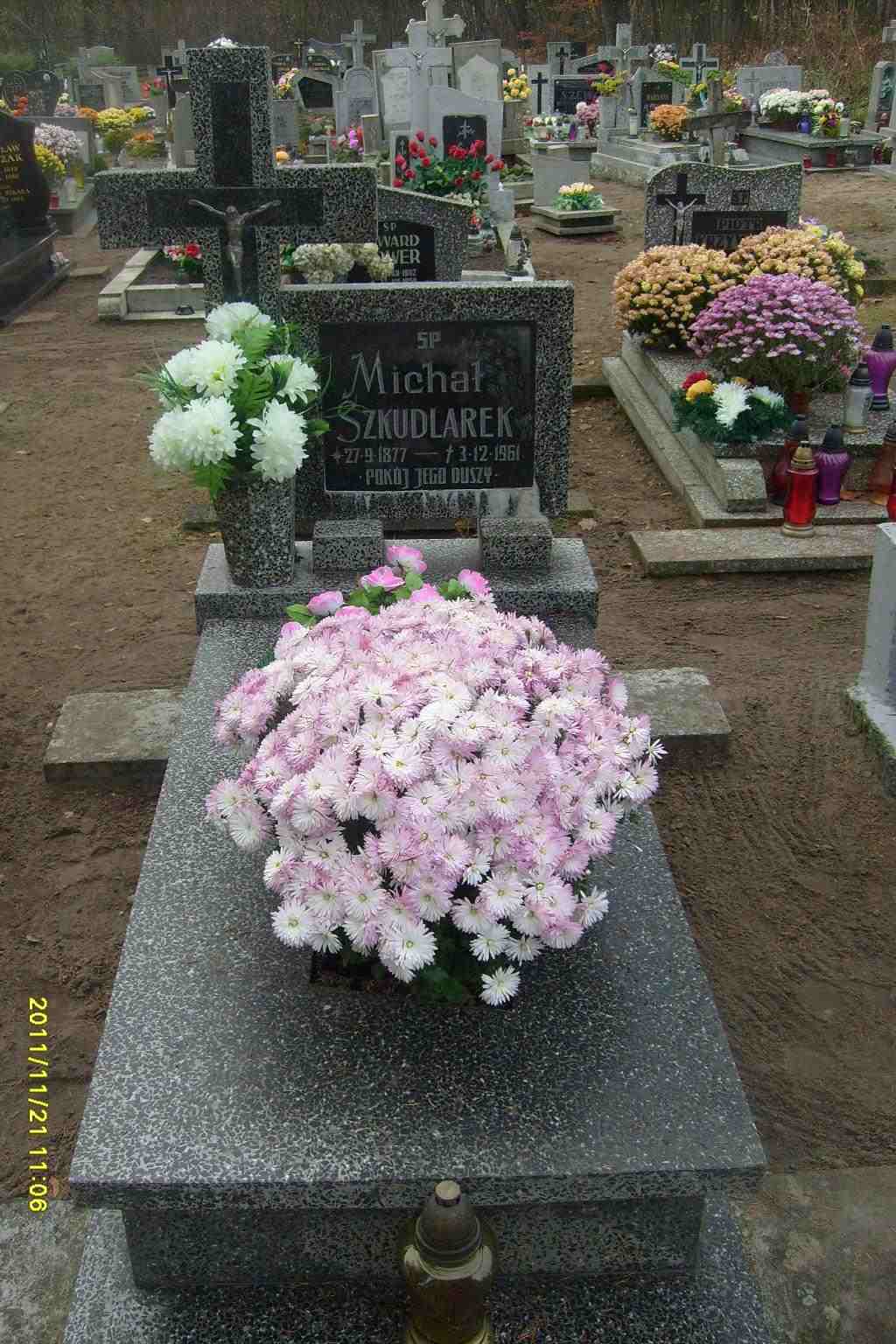 Grób: II,I,19 Szkudlarek Michał ur.:1877-09-27 zm.:1961-12-03 Piekarski Czesław, Józef ur.:1938-07-19 zm.:2023-01-08 Piekarska Józefa ur.:1910-10-18 zm.:1982-09-17 Piekarski Franciszek ur.:1912-01-06 zm.:1985-05-19 |
