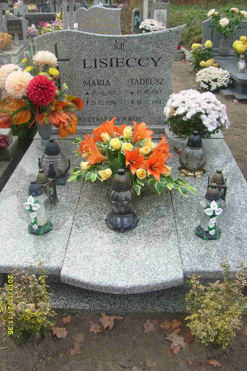 Grób: II,III,24i25 Lisiecka Maria ur.:1917-10-07 zm.:1990-12-21 Lisiecki Tadeusz ur.:1913-01-01 zm.:1954-12-08 Lisiecki Piotr ur.:1946-08-02 zm.:2012-04-23 Lisiecka Pelagia ur.:1953-05-18 zm.:2012-04-23 |
