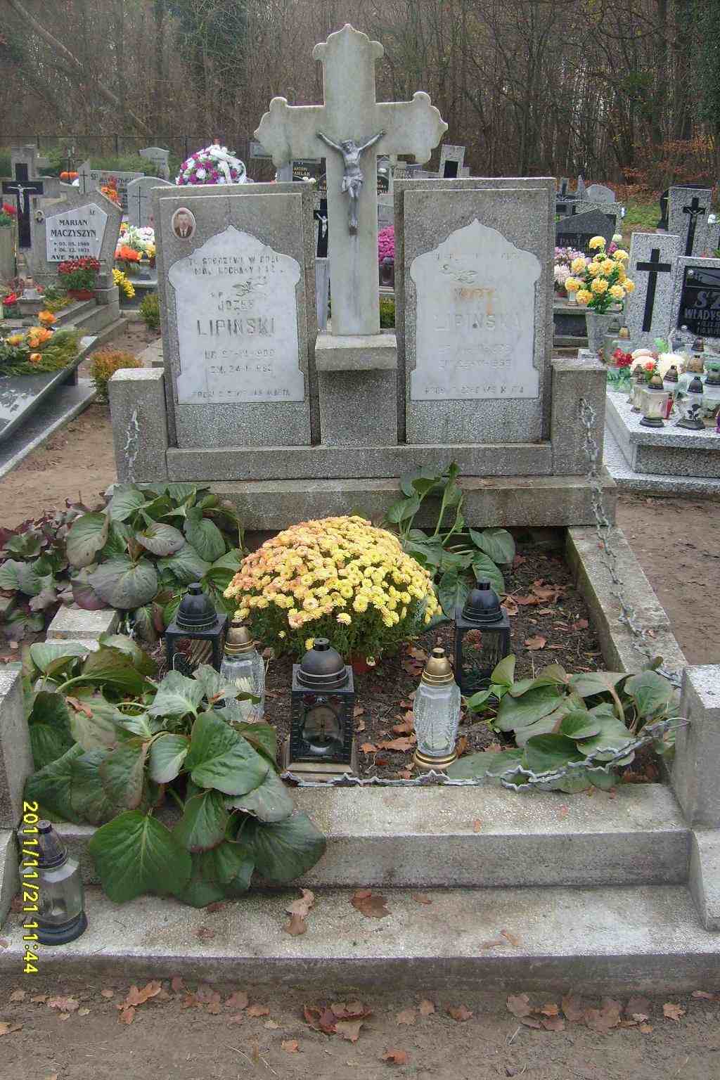 Grób: II,IV,15i16 Lipiński Józef ur.:1900-03-27 zm.:1968-01-24 Lipińska Marta ur.:1888-07-04 zm.:1956-11-26 |