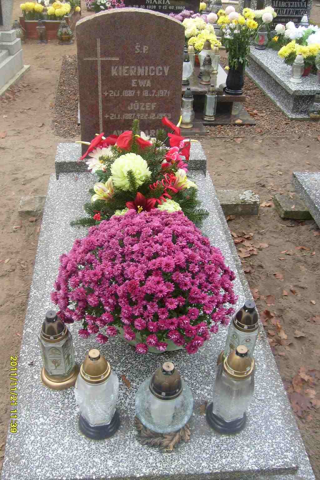 Grób: II,IV,5 Kiernicka Ewa ur.:1887-01-21 zm.:1971-07-18 Kiernicki Józef ur.:1887-01-21 zm.:1953-12-22 |
