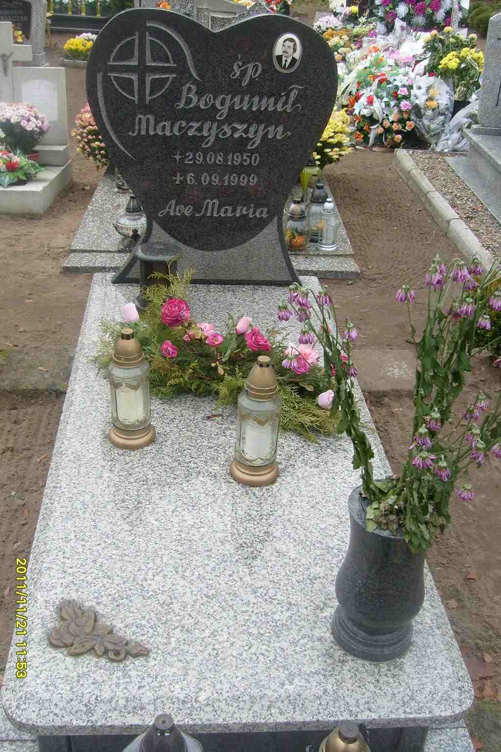 Grób: II,VI,10 Maczyszyn Bogumił ur.:1950-08-29 zm.:1999-09-06 Maczyszyn Marian ur.:1949-05-03 zm.:1971-12-06 |