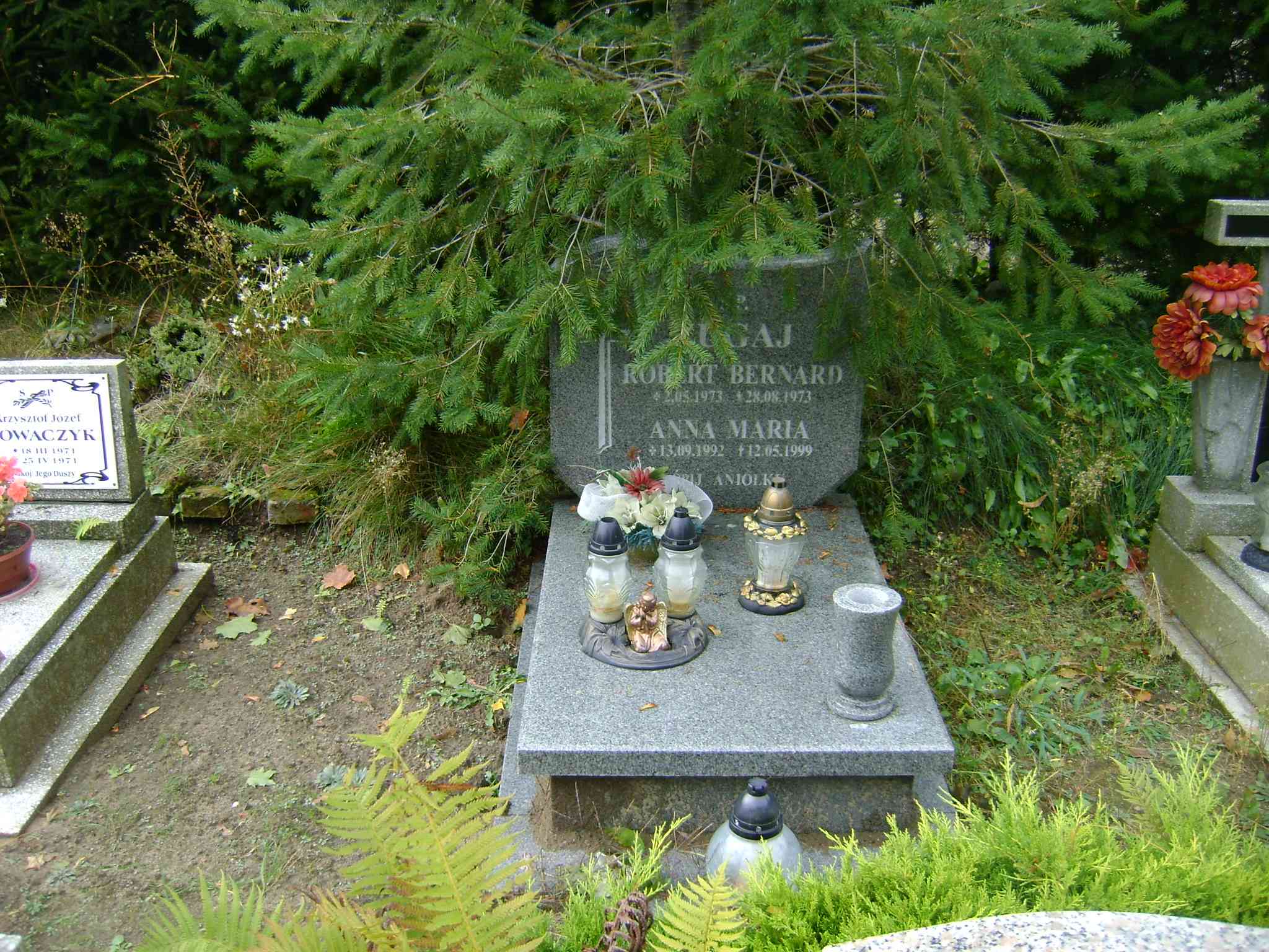 Grób: I.1.10 Żugaj Robert Bernard ur.:02.05.1973 zm.:28.08.1973 Żugaj Anna Maria ur.:13.09.1992 zm.:12.05.1999 |
