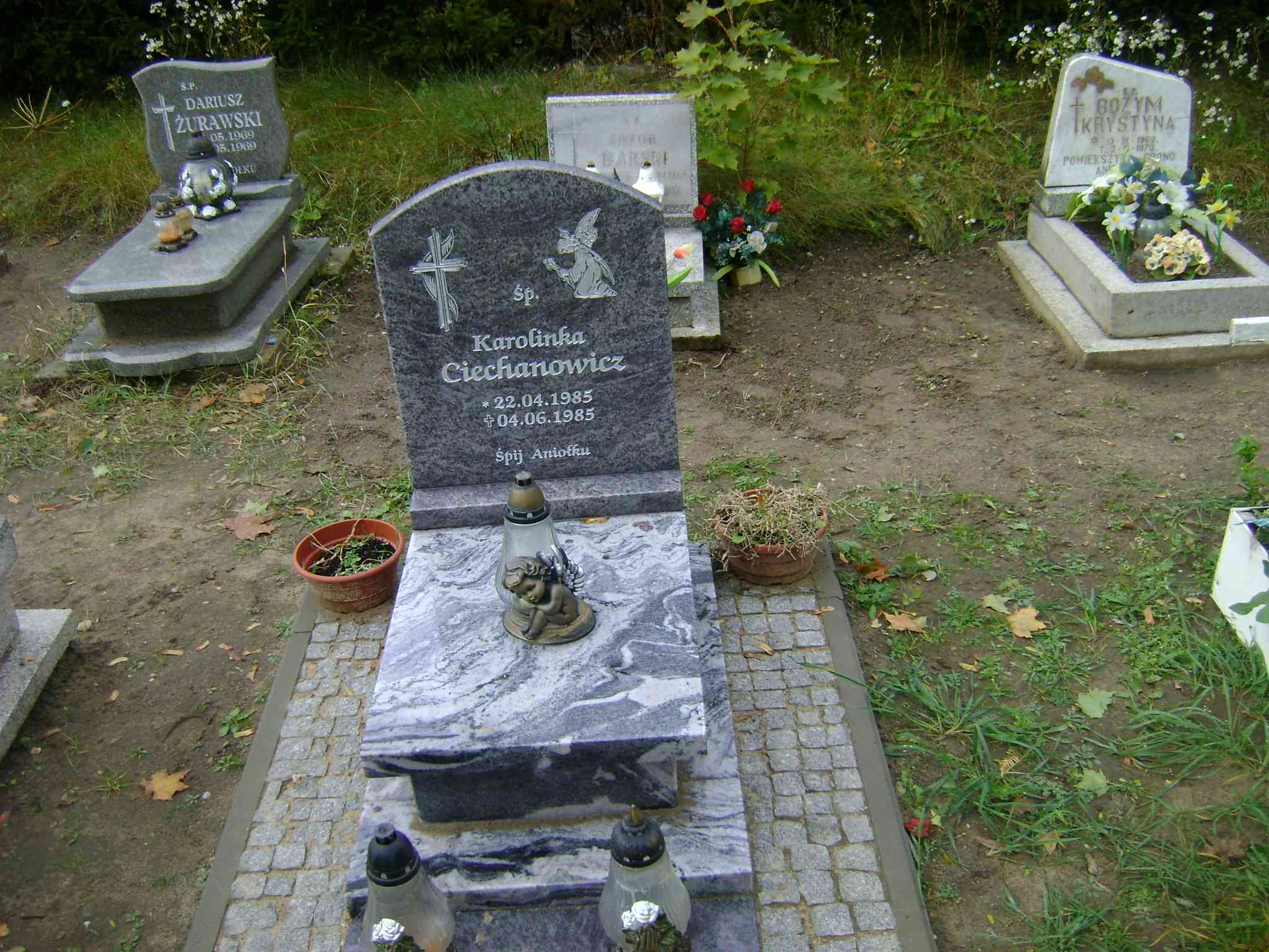 Grób: I.2.7 Ciechanowicz Karolina ur.:22.04.1985 zm.:04.06.1985 |