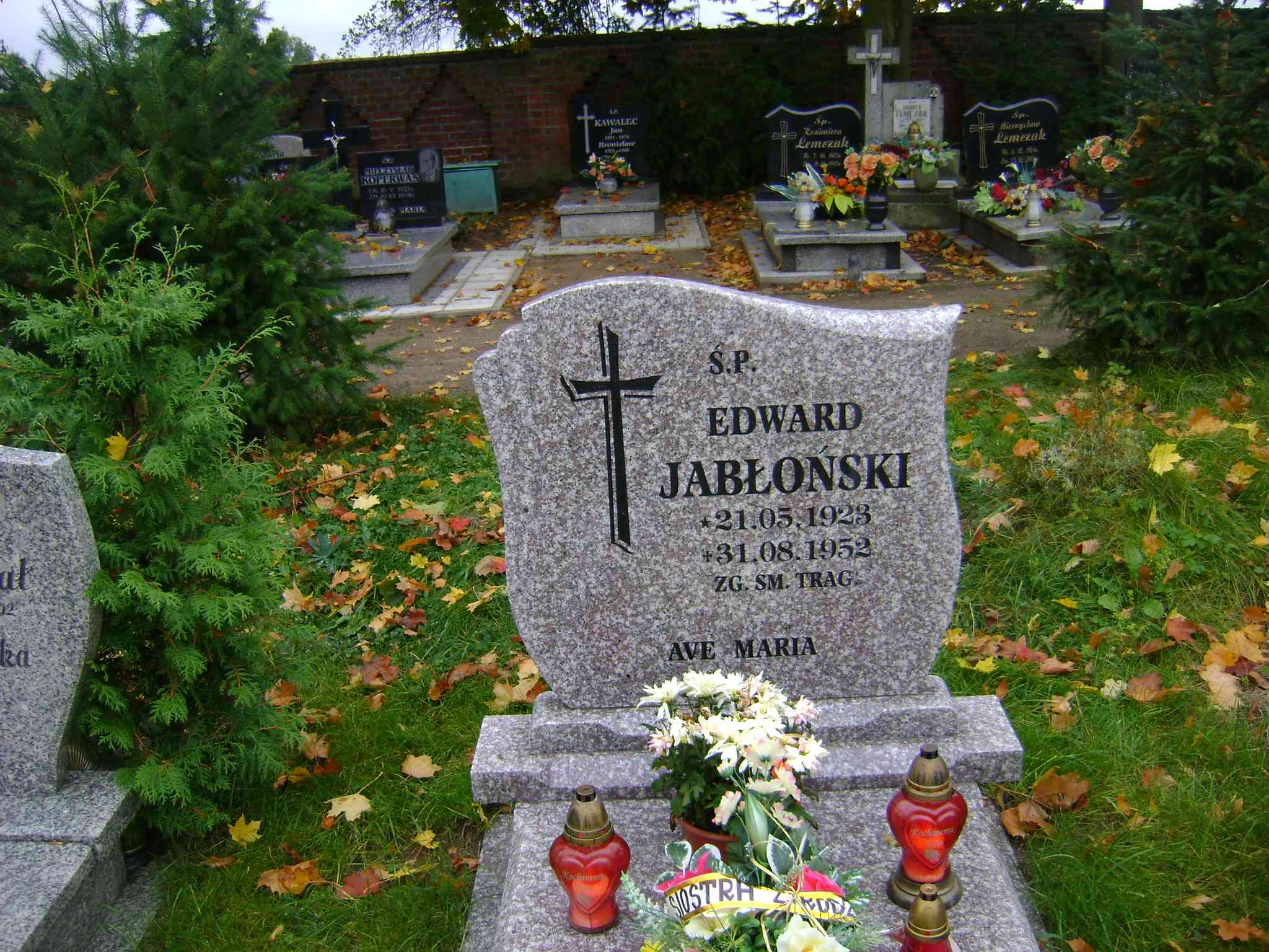 Grób: II.1.10 Jabłoński Edward ur.:21.05.1923 zm.:31.08.1952 |